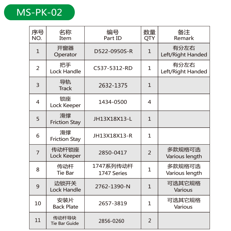开窗器和边锁把手颜色可根据需求定制,适应不同场景。