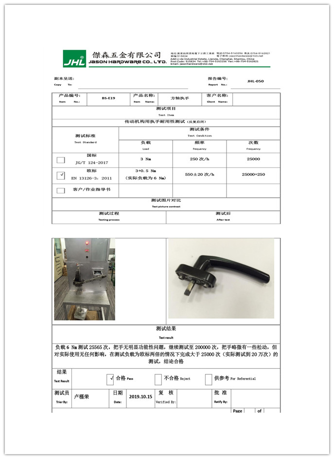 名称:平开窗方轴执手